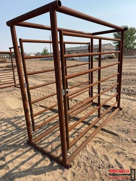 90 inches long x 38 inches wide x 77 inches tall, has swinging gates on both sides,