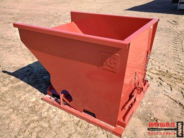 KC Implements, 2 Yard Forklift Hopper, these are super handy and we can attest to the durability. Measures 63inX50inX38in. 11in Fork pockets. Made in USA