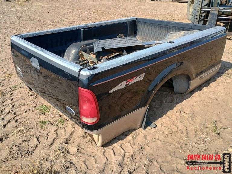 Ford 8ft F250 Truck Bed, Black/Tan color. Includes tailgate, rear bumper, 2in hitch, and gooseneck ball. Has a PendaLiner bed liner. Diamondplate tailgate protector. Some small dents/scratches