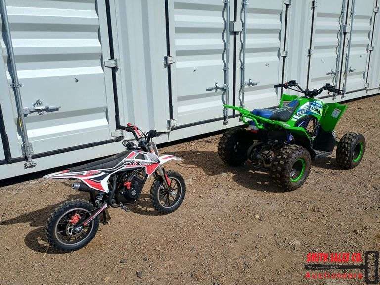 This lot is for both a Pentora 125cc ATV and a STYXmoto 50cc Dirtbike. The ATV will run but has a problem with the battery or starter motor. The dirt bike is untested, we are unsure of its condition. Both look relatively unused. All tires hold air, no major leaks. Both machines are made in China.