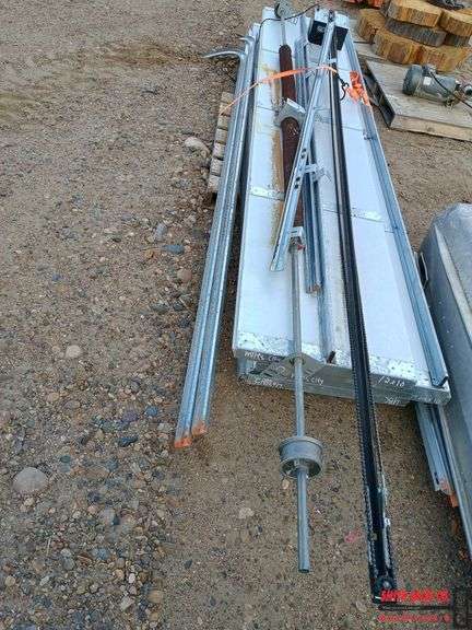 1 used 12ft wide x 10ft tall garage door with 1/2HP electric opener. Includes tracks, springs, opener mechanism, A box of hardware including rollers, hinges, and cables, and the door panels.