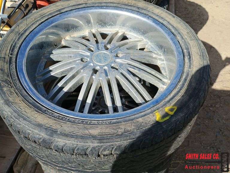 Set of 4 Versanté 22 Inch Alloy Rims and Tires. Rims are in great shape. Falken Ziexs P305/45R22 118H tires are badly dryrotted.