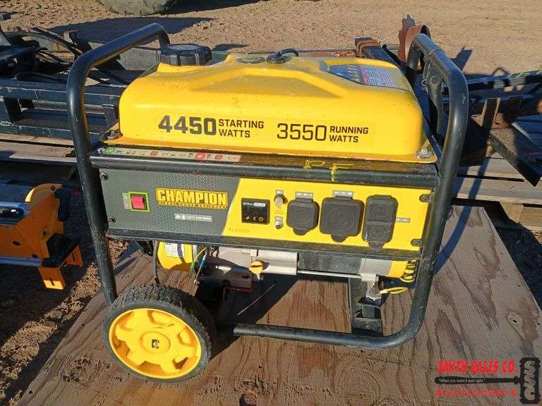 1 used Champion 3550 Watt Generator. 120/240V output. 224cc Champion gas engine. Starts and runs great.