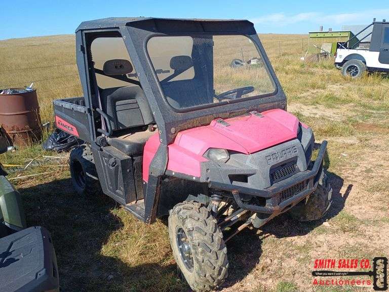 2011 Polaris Ranger. Starts but will not stay running, likely has bad fuel. We heard it run but were not able to move it under its own power.