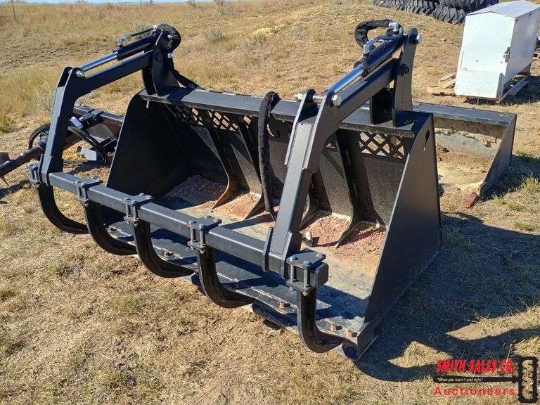 1 Used Jenkins 7ft SkidSteer Grapple Bucket. Measures 7ftW X 41inL X 33in H. Has 3/4in thick tines. Appears to have seen very little use, hoses are in great shape, no cylinder leaks. Quick Connect hydraulic lines. Made in USA.