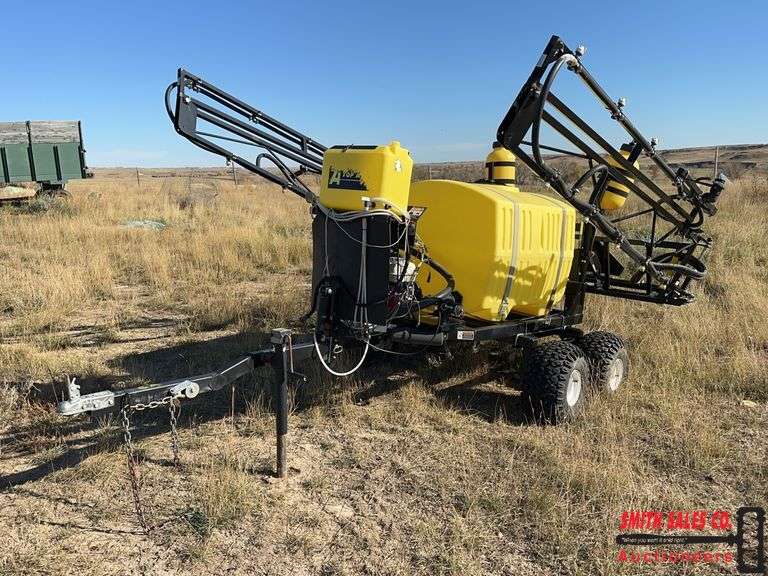 Folds out to approximately 46ft wide. 200 Gallon Tank, Honda GX160 engine. It has a monitor and GPS. Currently non-running, inop.