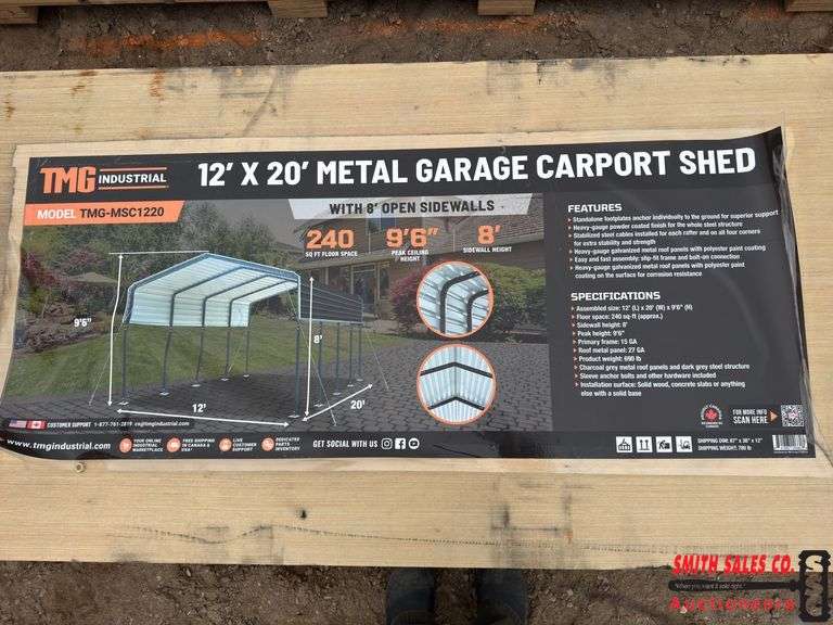Unused TMG / StanForge-MSC1220 Metal Garage Carport Shed 12' x 20'