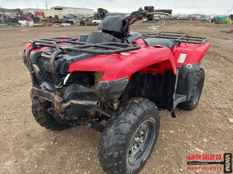 2014 Honda 420, had a hard wreck up front, metal & plastic is tore up, started & ran immediately, we drove it around the lot a little bit, brakes work, shaft drive. Shows 6,003 miles. Seems to run real nice, electronic shifter works but at times doesn't.